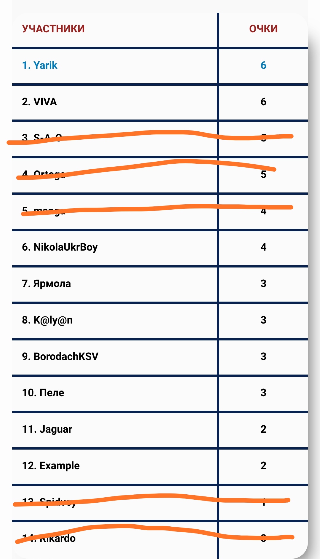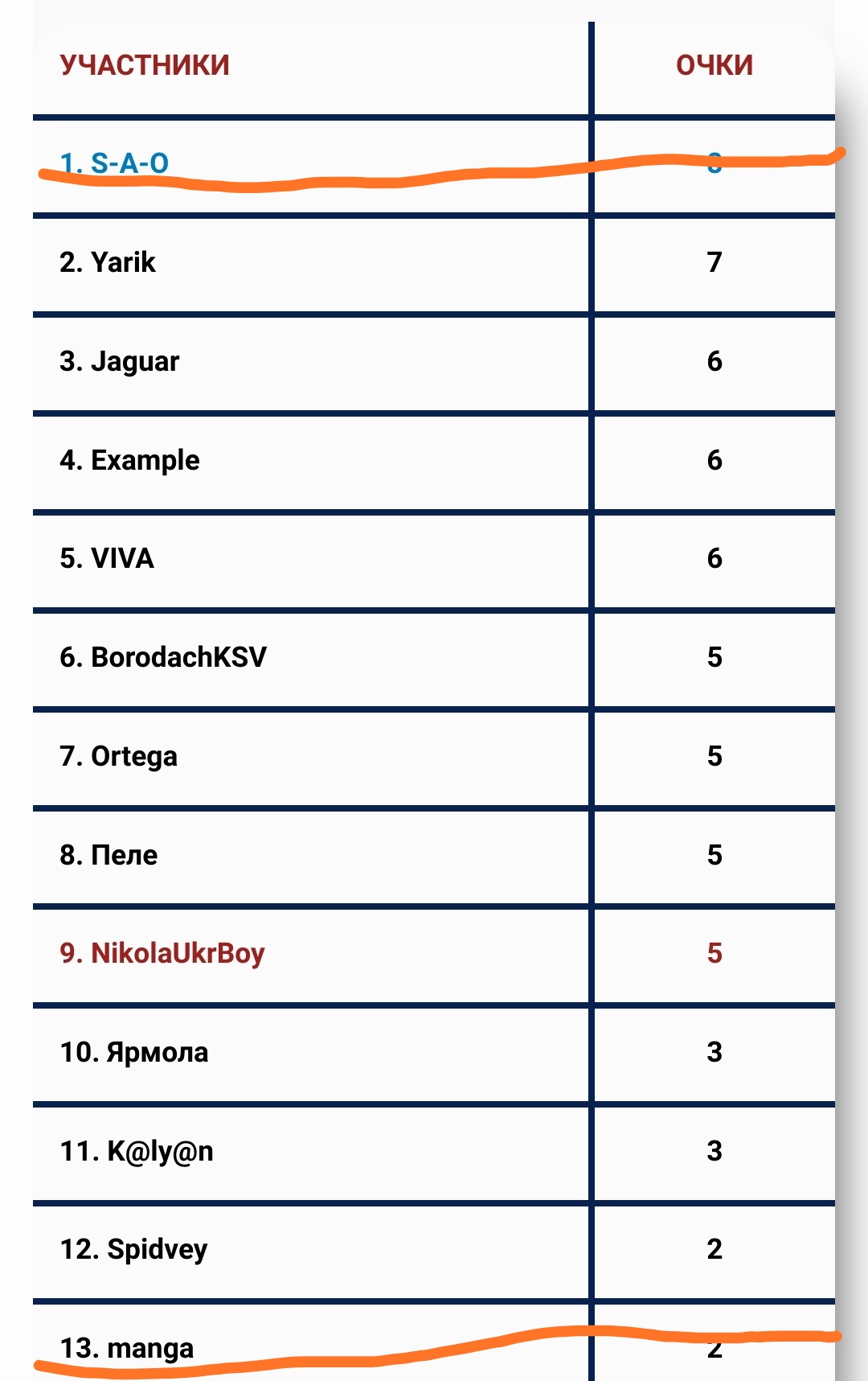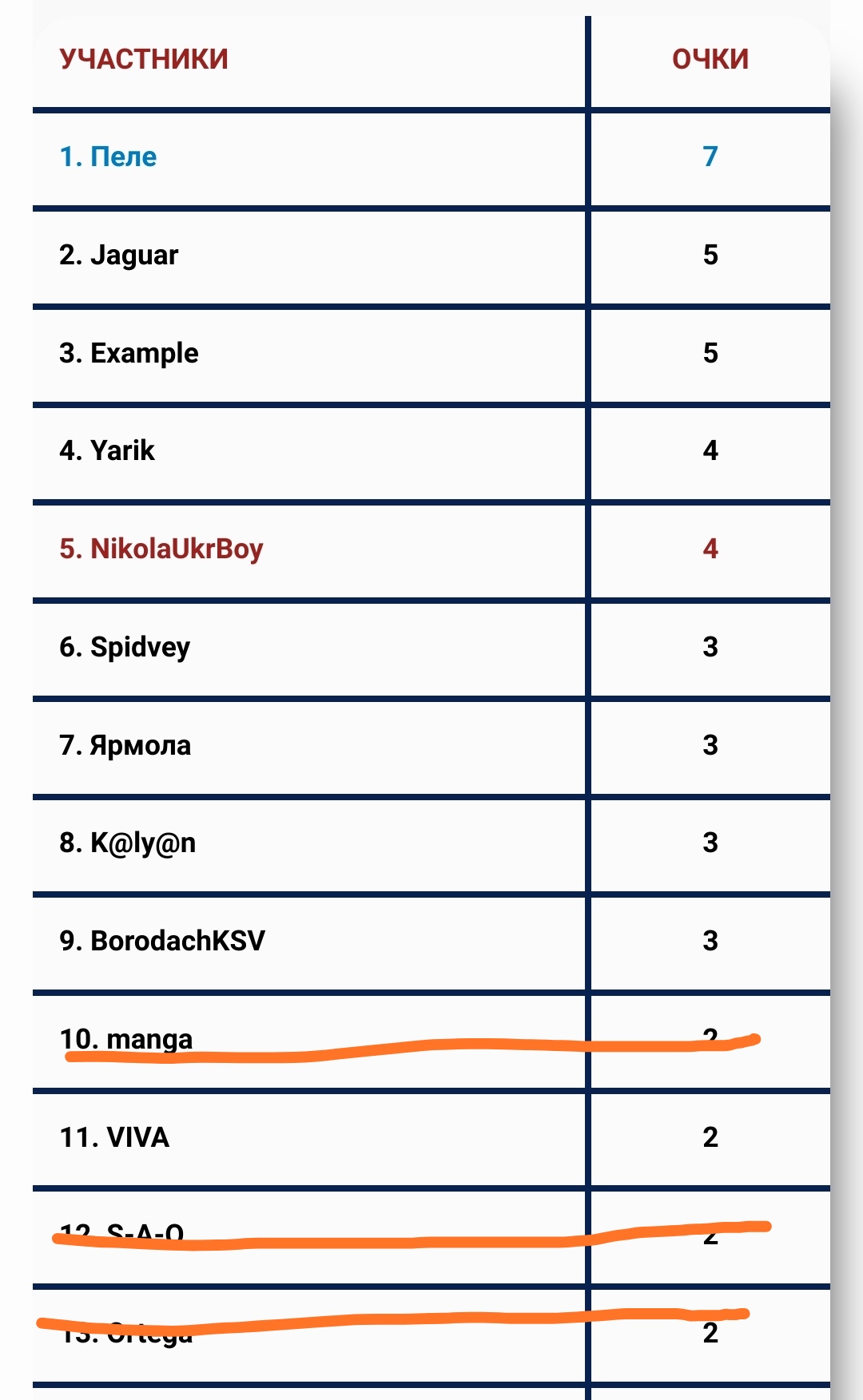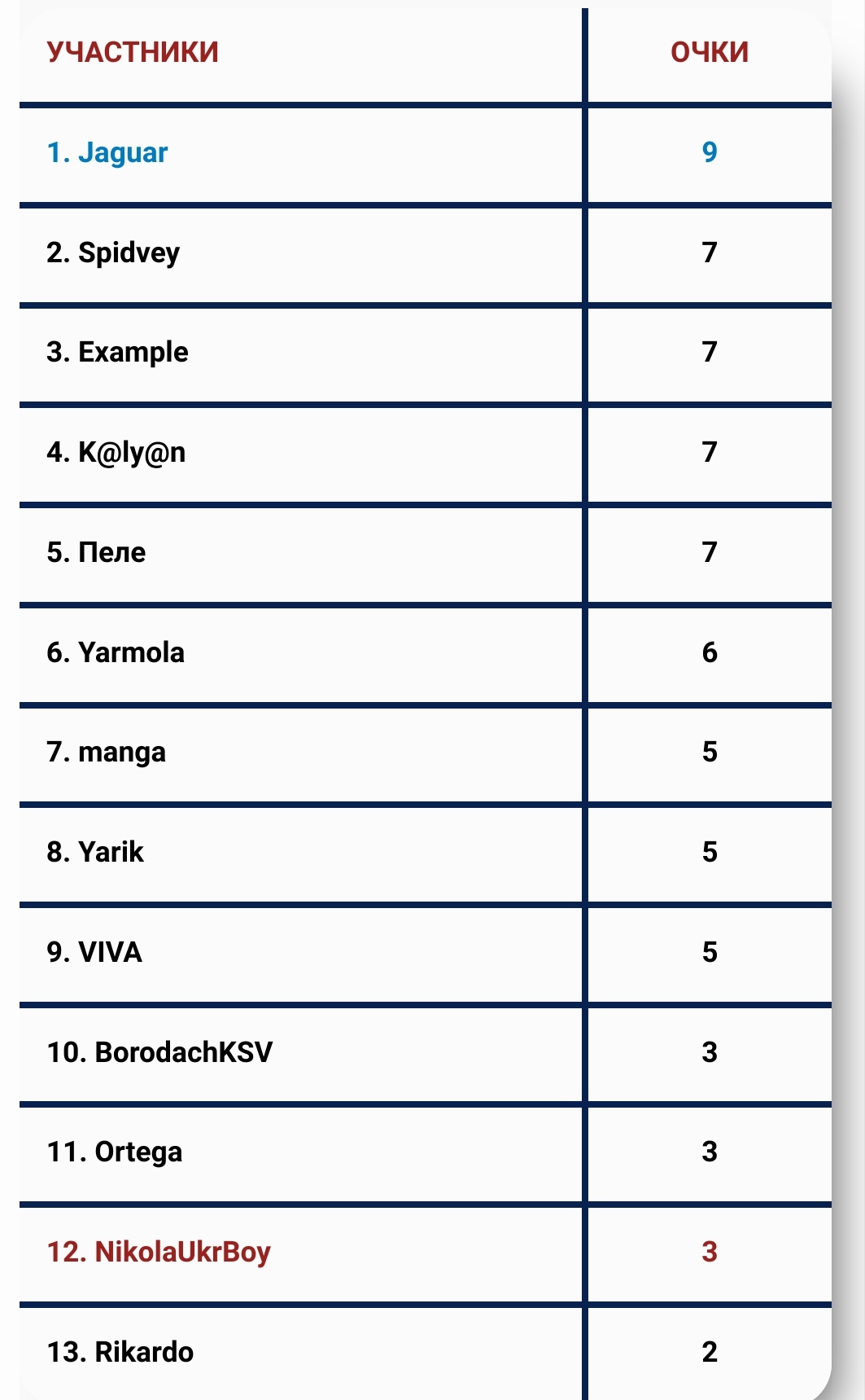 Самое слабое звено - BorodachKSV "0" баллов.